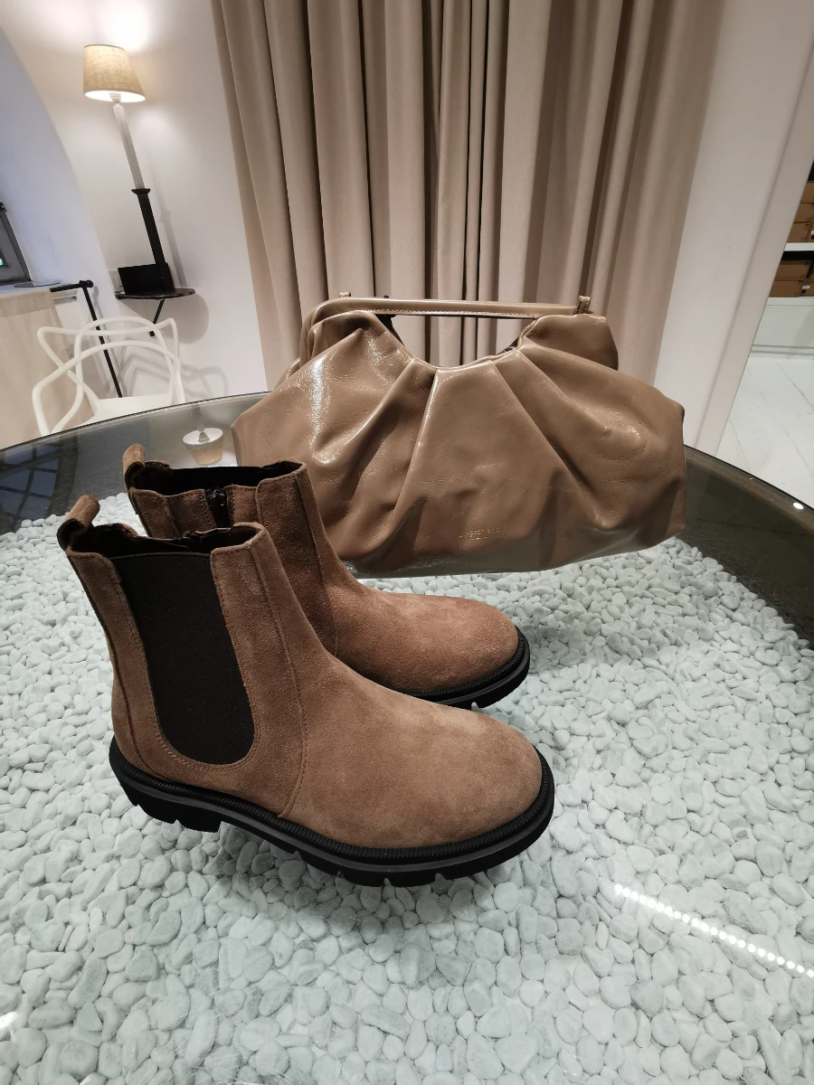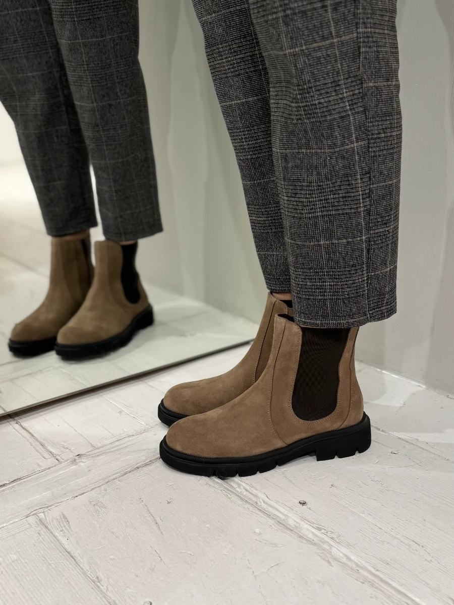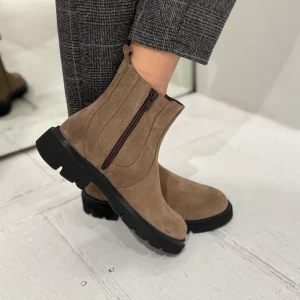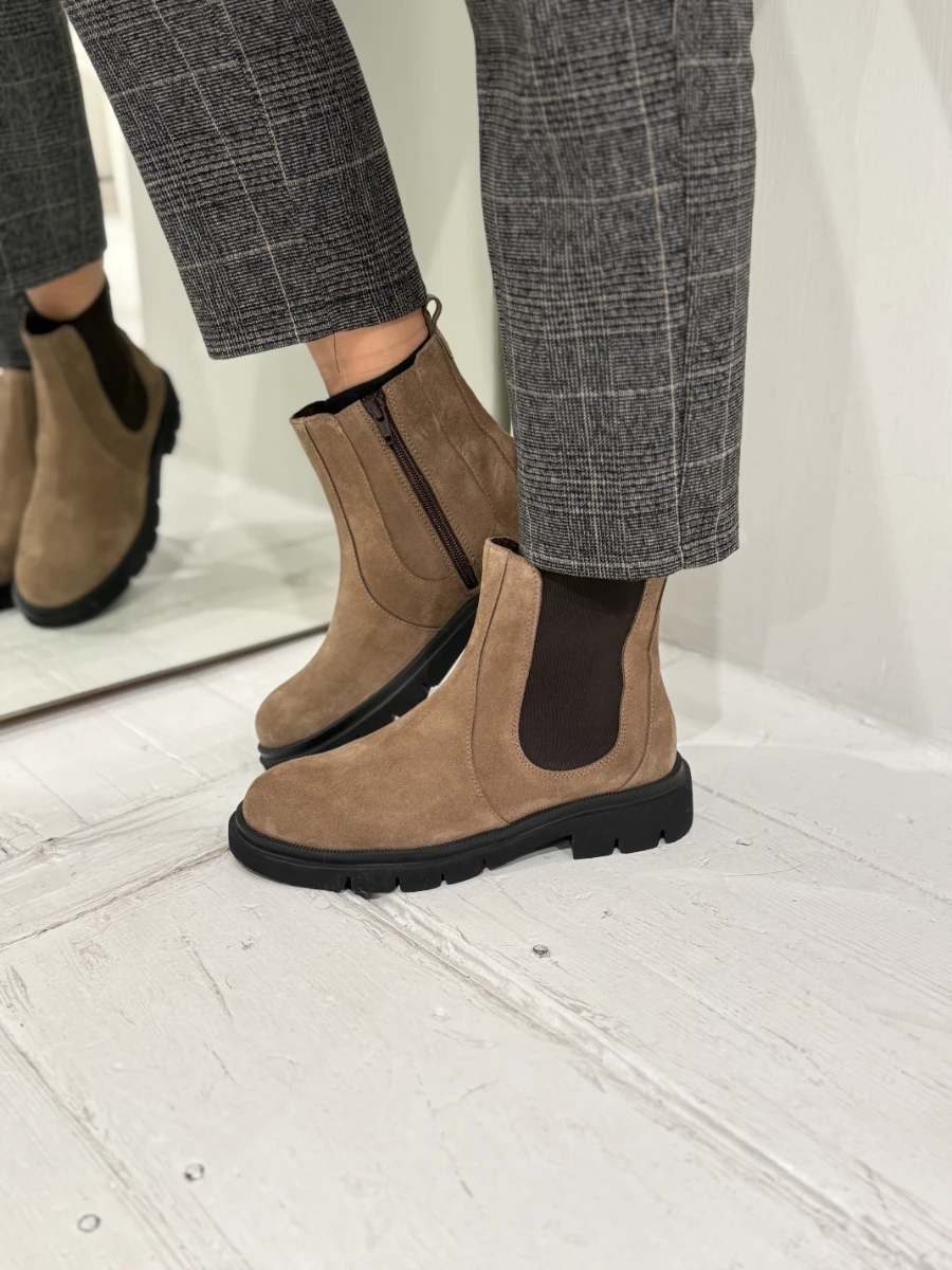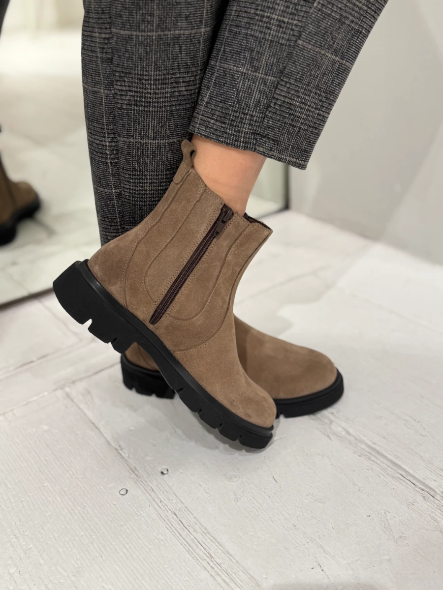 Beatles in camoscio beige con cerniera