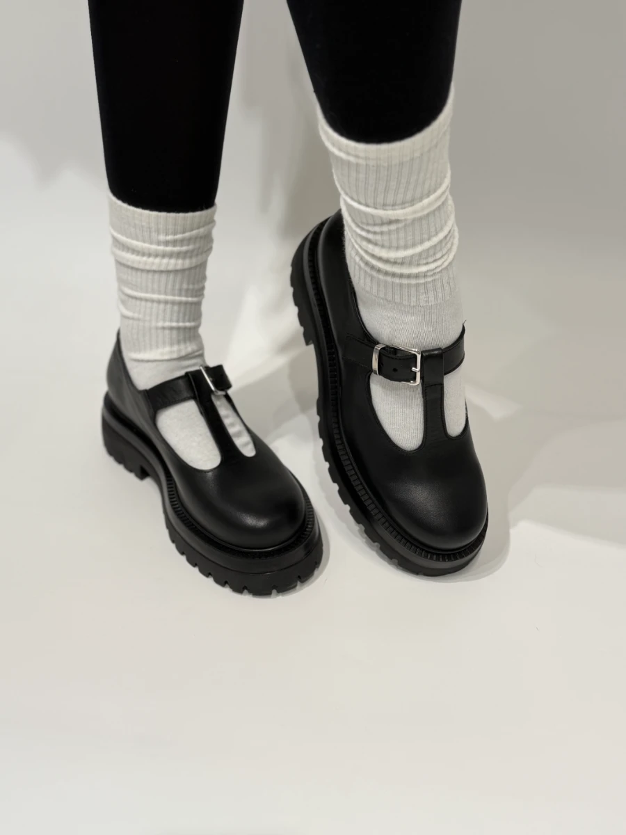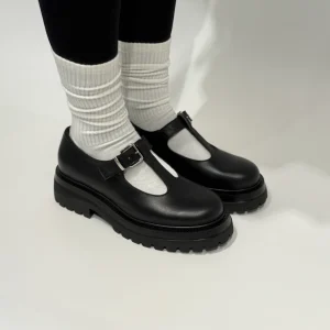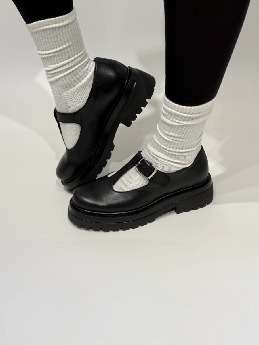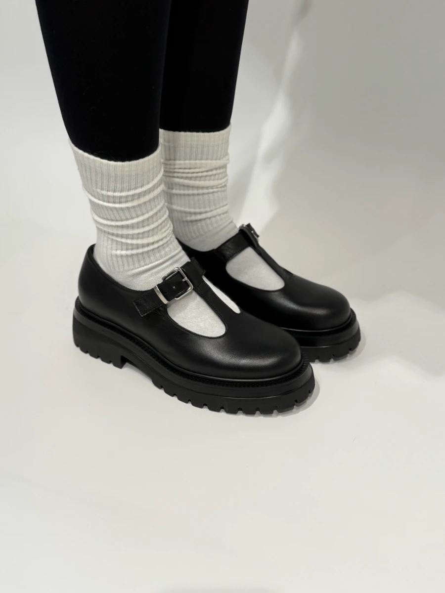 Mary Jane in pelle nera, carrarmato e cinturino a T.