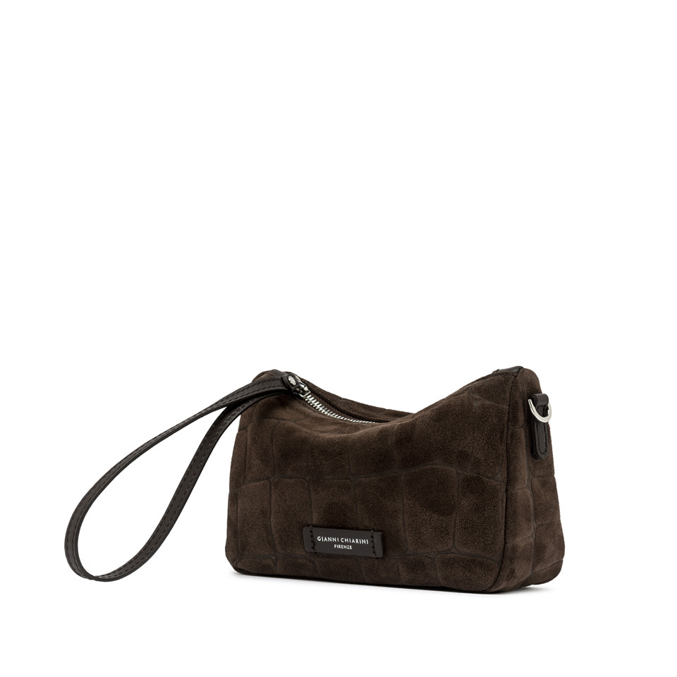Gianni Chiarini piccola borsa a mano con chiusura. Realizzata in pelle scamosciata. Prodotto di alta qualità, fabbricato in Italia.
